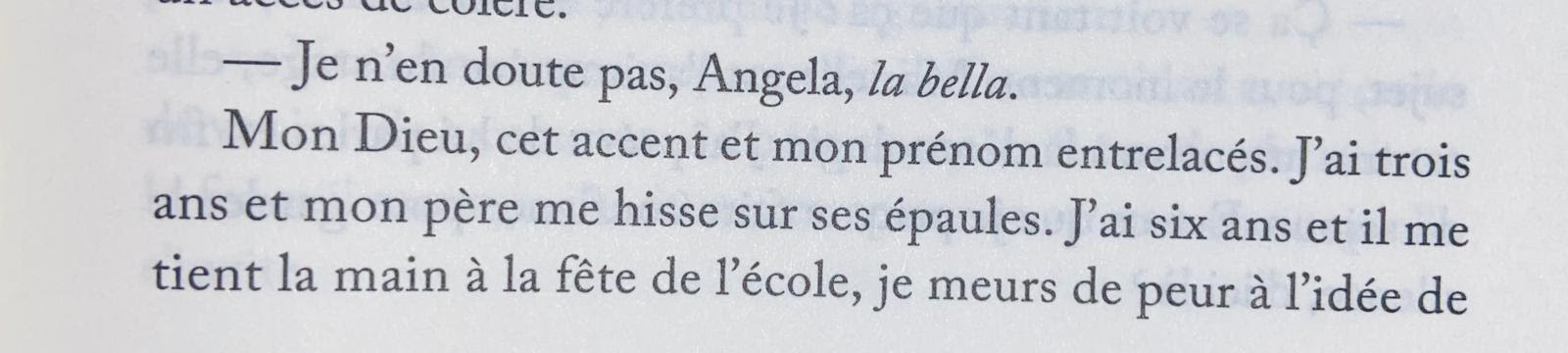 Dans cet extrait, un homme espagnol insère un « la bella » dans une phrase, alors qu’il s’adresse à mon personnage principal, Angela, dont le père est colombien.