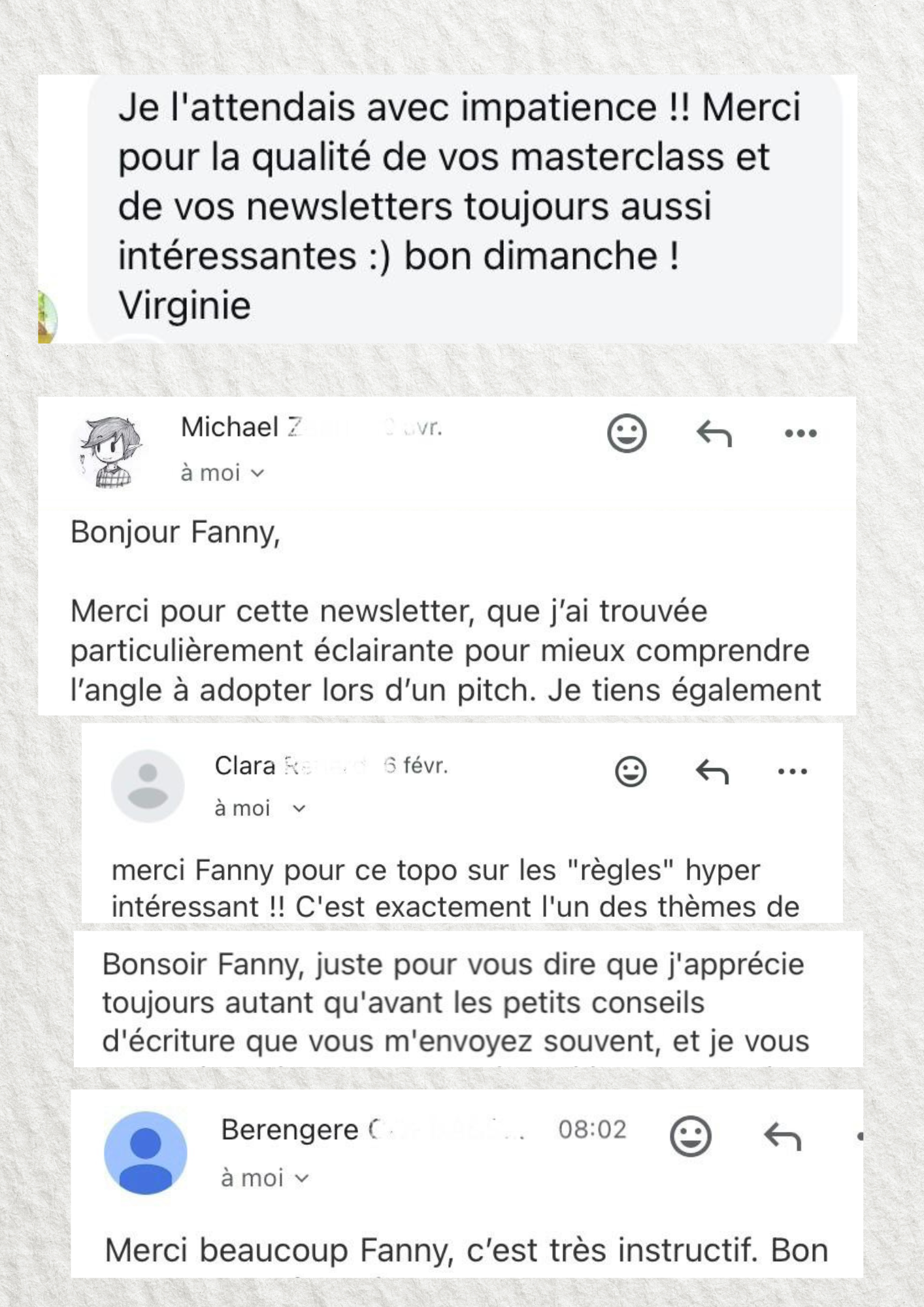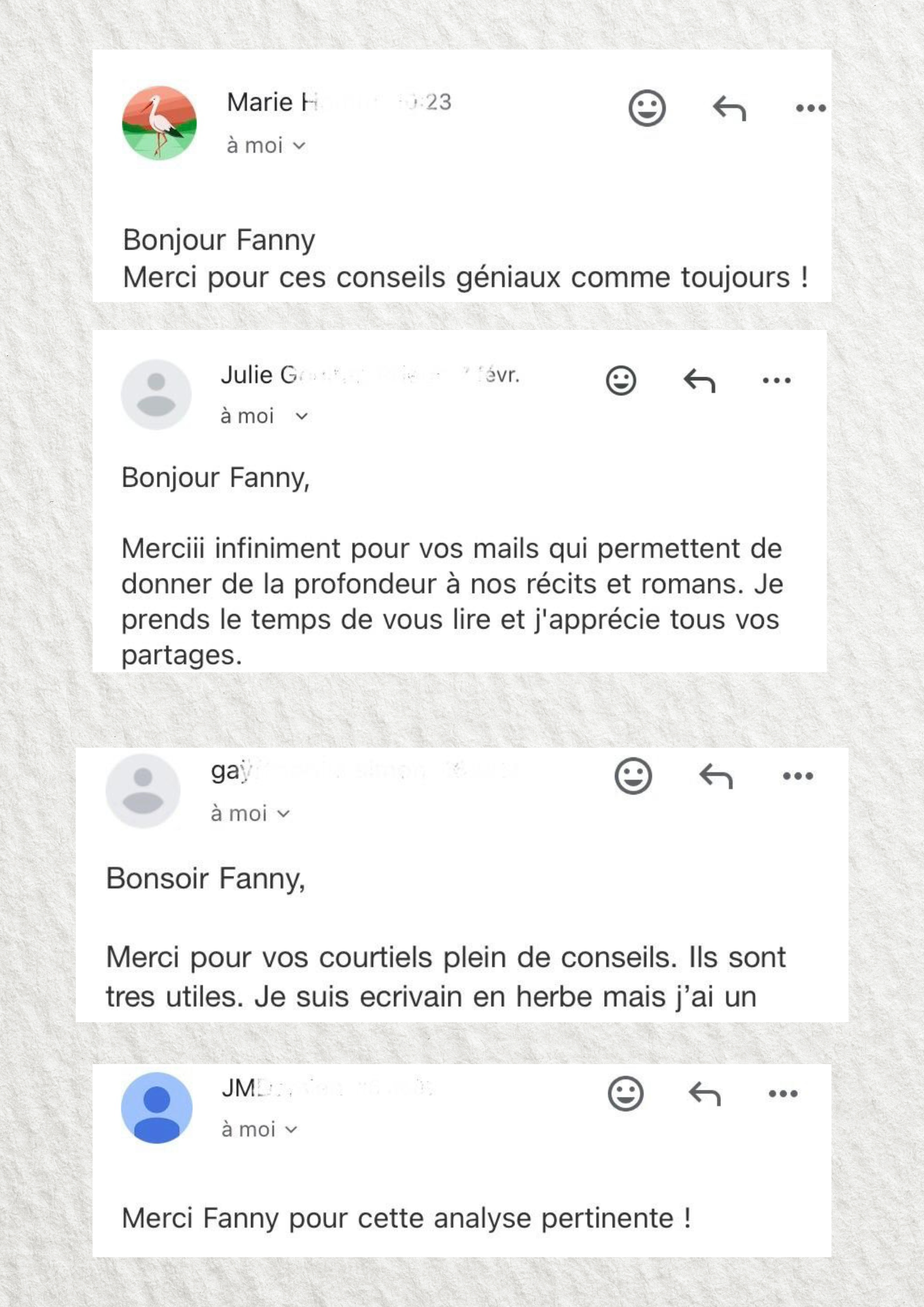 En vous abonnant, vous acceptez de recevoir de temps en temps des offres promotionnelles sur mes masterclass d'écriture.